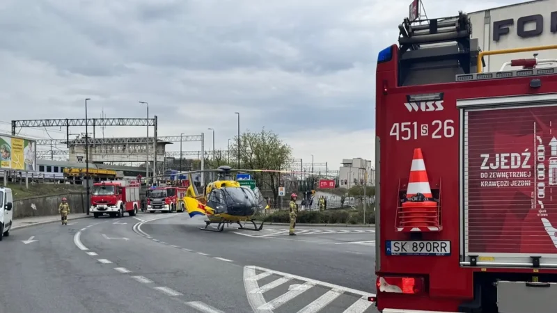 Dramatyczne sceny rozegrały się dziś przed południem w samym sercu Gliwic. Zaledwie sto metrów przed Dworcem Głównym, przy dolnej części ulicy Traugutta, doszło do poważnego wypadku – pociąg pośpieszny jadący z Przemyśla do Ustki potrącił 33-letniego mężczyznę. Akcja ratunkowa była na tyle poważna, że na miejsce wezwano Lotnicze Pogotowie Ratunkowe, a helikopter lądował wprost na skrzyżowaniu w centrum miasta.