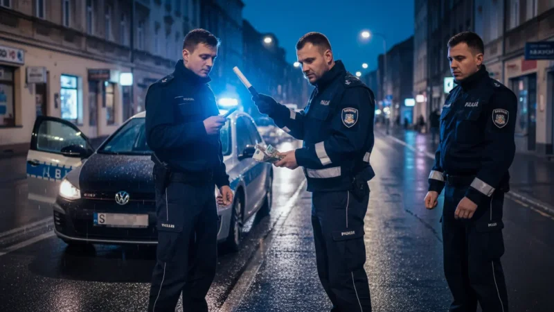 Gdy młody kierowca zorientował się, że wpadł, postanowił rozwiązać problem w sposób, który tylko pogorszył jego sytuację. Mężczyzna próbował wręczyć policjantom łapówkę w wysokości 1600 złotych, licząc najwyraźniej, że funkcjonariusze „zapomną” o całej sprawie. To była fatalna decyzja, która zamiast pomóc, doprowadziła do znacznie poważniejszych konsekwencji prawnych.