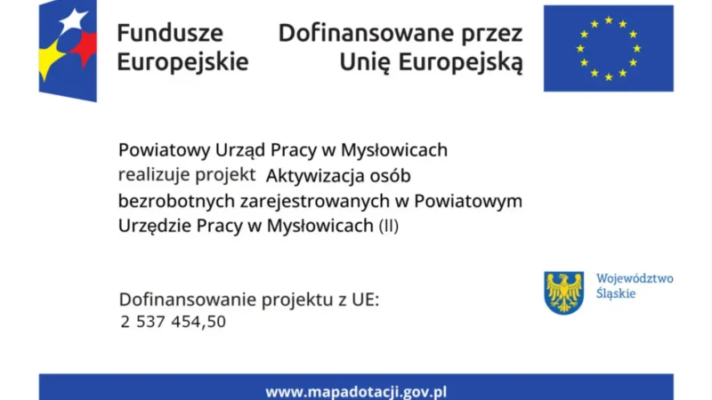 W ramach Programu Fundusze Europejskie dla Śląskiego 2021-2027, realizowanego ze środków Europejskiego Funduszu Społecznego Plus, Powiatowy Urząd Pracy w Mysłowicach ogłosił nabór wniosków w projekcie „Aktywizacja osób bezrobotnych zarejestrowanych w Powiatowym Urzędzie Pracy w Mysłowicach (II)”. W 2026 roku wsparcie otrzyma łącznie 20 osób bezrobotnych.