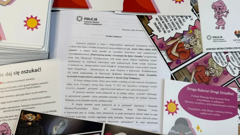 Katowiccy policjanci w przedświątecznej akcji połączyli pomoc materialną z edukacją seniorów w zakresie bezpieczeństwa. We współpracy z Katowicką Spółdzielnią Mieszkaniową oraz Fundacją „Da Moc” przygotowali ponad sto paczek świątecznych, do których dołączyli materiały profilaktyczne ostrzegające przed działaniami oszustów. Inicjatywa objęła samotne osoby starsze z regionu, a w akcję włączyła się również młodzież ze szkół.