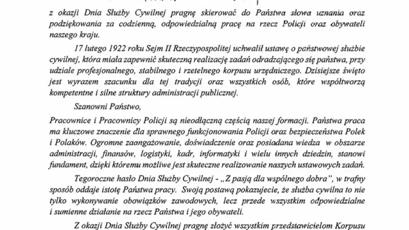 Choć Święto Służby Cywilnej nie jest tak medialne jak inne święta branżowe, ma ogromne znaczenie dla tysięcy osób pracujących w administracji państwowej. To dzień, w którym można zatrzymać się na chwilę i podziękować za często niedocenianą, ale niezwykle istotną pracę. W przypadku Policji, gdzie każda sekunda może mieć znaczenie, sprawna administracja i wsparcie to fundament skutecznego działania.
